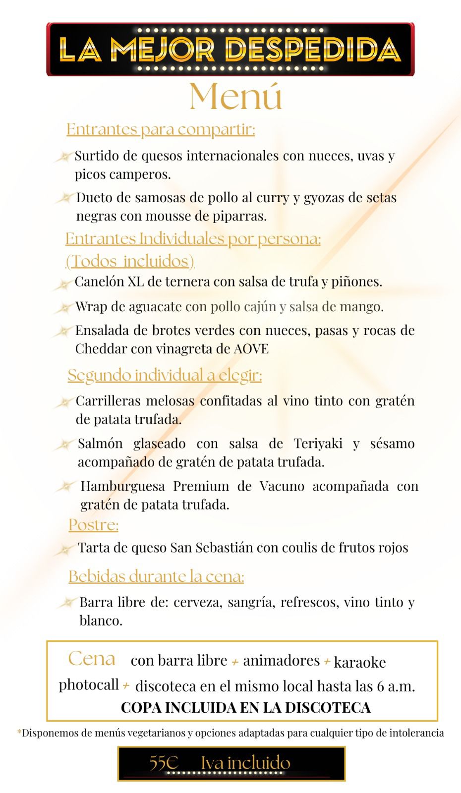 Vive una de las mejores noches de tu vida con nuestras cenas con espectáculo. Es una noche única e inolvidable. Haz que sea la mejor despedida.